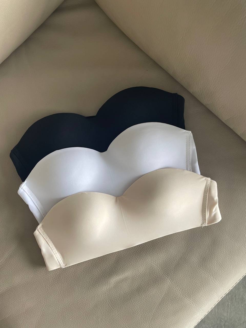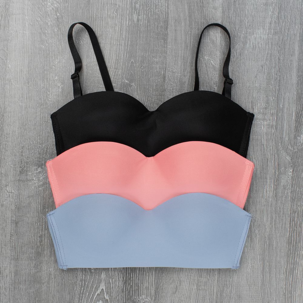 Зручні бюсти без кісточок, без push up, бретелі регулюються та знімаються, застібка на 3 гачки із 4х позицій. Бюстгальтер має силіконові доріжки, завдяки яким буде надійно триматись навіть у спеку.