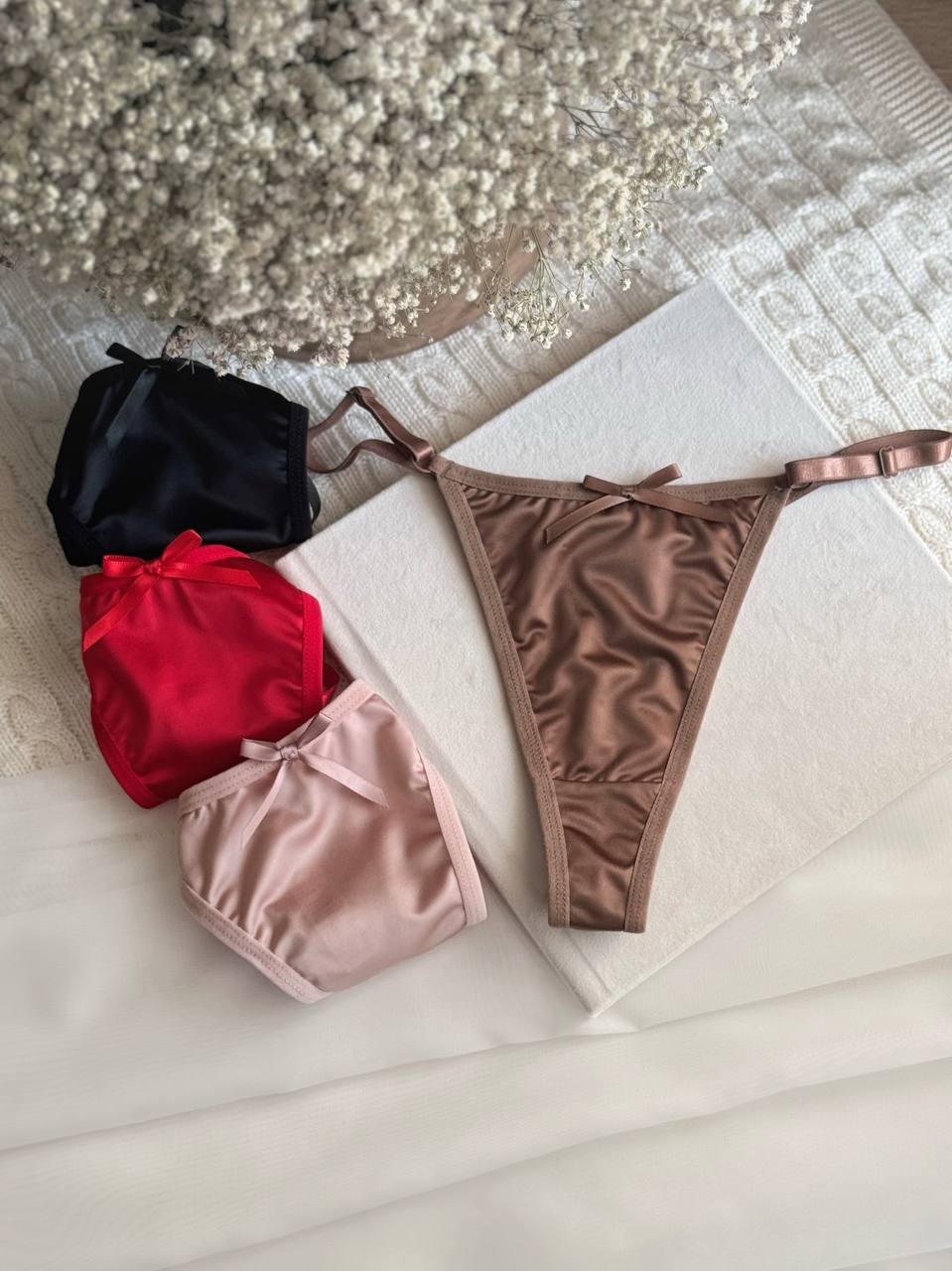 Трусики стрінги на завищеній посадці з еластичного та невагомого стрейч-шовку. Модель з регуляцією об'єму та вшитою бавовняною ластовицею, дуже зручний та комфортний варіант для щоденного носіння.