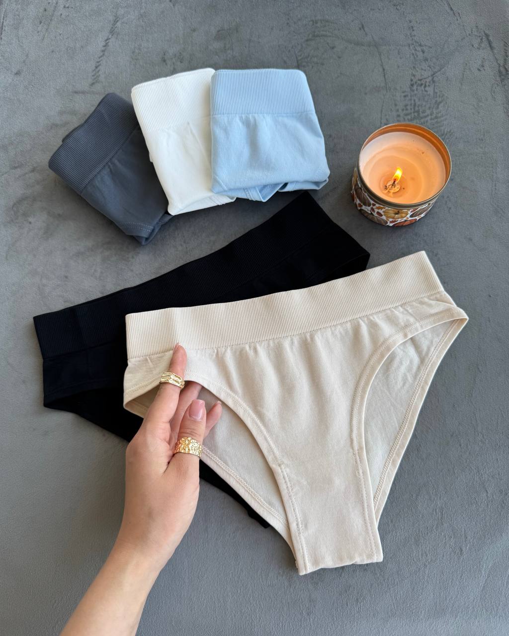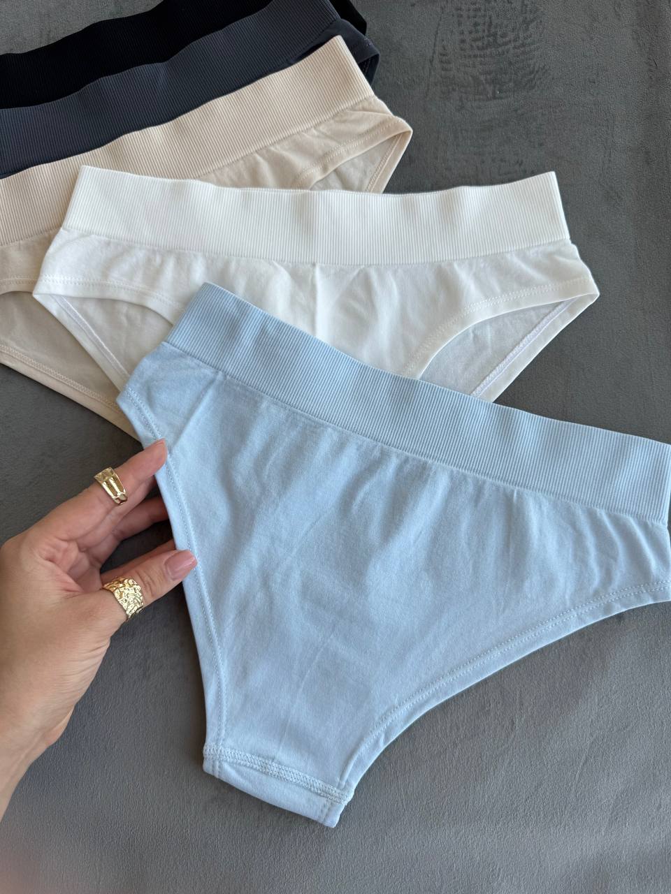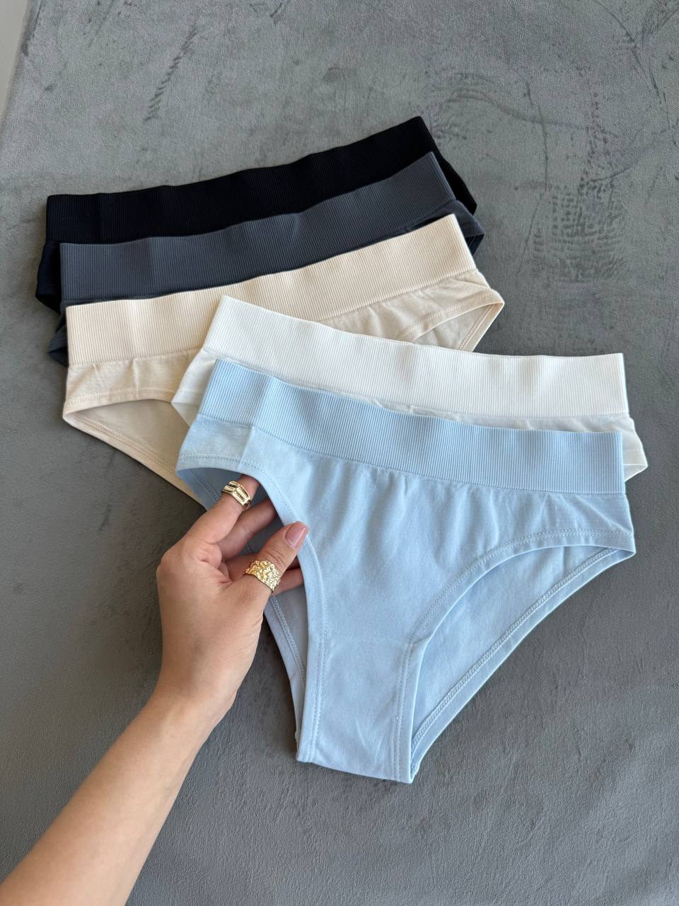 Еластичні трусики-сліпи з високим поясом - м'які, комфортні та з малопомітними швами. Завдяки широкому рубчастому поясу вони гарно фіксуються на талії та не тиснуть. У трусиках вшита бавовняна ластовиця для максимального комфорту.